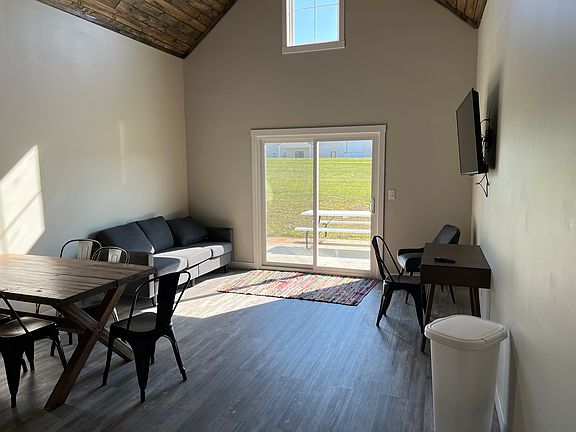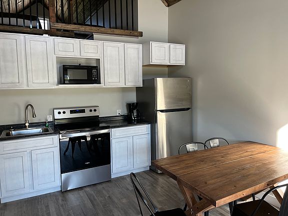 There is a mast bed room on main level and in loft the is a second bedroom. It is an open living, dining and kitchen. Pool is shared with all staying at property. 1 year lease term, no smoking in house, 1 pet max ( +$100 a month)