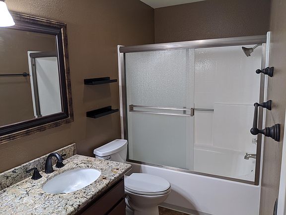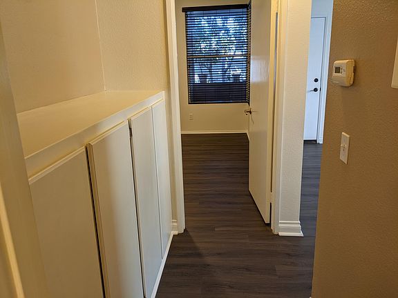 Freshly painted ground floor 1 bedroom condominium with beautiful brand new hard vinyl flooring throughout the living room, bedroom and large walk-in closet. The updated kitchen has ceramic tile flooring, granite countertops, and comes furnished with energy efficient stainless steel appliances (refrigerator, gas stove, microwave, and dishwasher). The dual vanity bathroom has ceramic tile flooring, large tub, and granite countertops. Full-sized side-by-side washer and dryer are also provided. The unit is located on a quiet corner with lots of trees, providing extra privacy and shade from the sun. One carport parking spot is provided with the option to add additional vehicles. Located in the highly sought-after Tuscany gated community within walking distance to parks, hiking trails, and plenty of restaurants. Renter responsible for Water, Electricity, gas, internet.