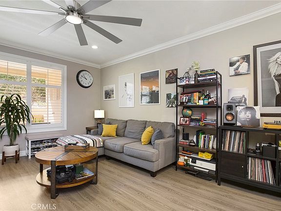 Charming Ground-Floor Condo in the Highly Desirable Tuscany at Foothill Ranch. Welcome to this beautifully maintained 1-bedroom, 1 bathroom condo offering 766 sq. feet of comfortable, open-concept living space. Located on the ground floor with no steps throughout, this quiet unit enjoys enjoys views of the walking path and features a huge private patio - perfect for relaxing or entertaining. Step inside to find an inviting, light and bright interior with vinyl flooring, elegant crown molding and plantation shutters. This functional floor plan flows effortlessly, anchored by a well-appointed kitchen with granite countertops and ample storage. This spacious bathroom features an oversized, remodeled walk-in shower, adding a touch of luxury to your daily routine. Tuscany at Foothill Ranch is a gated, resort-style community offering top-notch amenities including tennis courts, a golf putting green, multiple swimming pools, a fitness center, EV charging station and meticulously maintained grounds. Enjoy the peace and privacy of a quiet neighborhood, all while being conveniently located near shopping, dinning, parks and hiking trails. Don't miss this opportunity to own a stylish, low-maintenance home in one of the area's most sought-after communities.