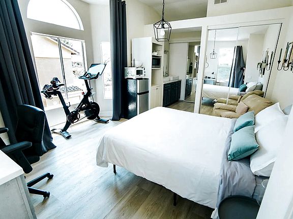 Comes with a Peloton! This charming living area features a private entryway and is attached to a condo in a tranquil neighborhood. It's just 3 minutes away from Target, Ralph's, restaurants, and the 241 freeway. With no neighbors above or below, you'll enjoy peace and privacy. Your contemporary and chic space can be furnished or left empty, depending on your needs. (As a professional photographer, I captured the photos myself.) It includes a Peloton (no subscription required, but still usable), a large built-in desk with plenty of storage, a desk chair, a queen-sized memory foam bed, two spacious closets, a kitchenette with a large refrigerator and a separate large freezer, a microwave, an oven, a hot plate, basic kitchen utensils, ample kitchen cabinet storage, a bathroom with double sinks (one can be used for the kitchen), a walk-in shower with a rain showerhead, shared laundry facilities located just outside the front door on the patio, and convenient parking nearby. The condo boasts a large patio with a dining area and lounge space to be shared with me. You'll also have access to community amenities such as the gym and pools. Please note, I am only interested in renting to one person. 3- 6 Month's to start, then flexible renewal options.