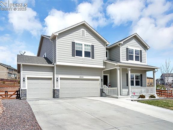 Welcome to this Misty Acres beauty! This home boasts 4 large bedrooms, 4 bathrooms, 3 car garage sitting on over a quarter of an acre in a quiet cul-de-sac. Inside you will find a bright and open main level – complete with modern kitchen and corner pantry, a large family room with quartz stacked stone fireplace, powder room, and office with French doors. Upstairs is sure to impress with 4 bedrooms, 3 bathrooms, laundry room, and storage galore. Bedrooms 3 and 4 are well appointed, each with their own walk-in closets. Bedroom 2 is a large junior primary with attached private bathroom with walk in shower. Through the French doors, you will find an expansive owner’s suite with mountain views, full 5-piece primary bathroom and a large walk-in closet. With over 3,000 sq ft finished, this home offers everything you need, plus a full basement with upgraded 9 ft ceilings and over 1,100 sq ft waiting for you to finish to your desires. Want a couple more bedrooms? Or maybe a wet bar and home theater room? With this versatile space and size, the possibilities are endless! Outside, you will find a covered front porch, and a spacious backyard patio with space to grill, entertain, and relax. The backyard has been fully landscaped with drought tolerant trees and has recently been over-seeded with soft natural pasture grasses that requires no additional watering. Additionally, this home offers award winning D-38 schools, no HOA, and a short 35 min commute to the Denver Tech Center or 25 mins to downtown Colo Springs. Don’t miss out on the opportunity to call this place home!