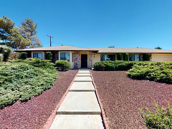 Beautiful meticulous home situated in Apple valley on .69 acre lot. This floorplan boasts of large formal living room/dining room combo with built in cabinets for extra storage. Family room with brick fireplace. Abundant cabinets in kitchen with an open area for your kitchen table. Extra large indoor laundry with an enclosed 1/2 bath. Three Oversized bedrooms with bay windows and extra storage. Master bath with dual sinks and large walk in shower and jacuzzi tub. New roof and A/C unit in 2016. Landscaped yard with outdoor Jacuzzi