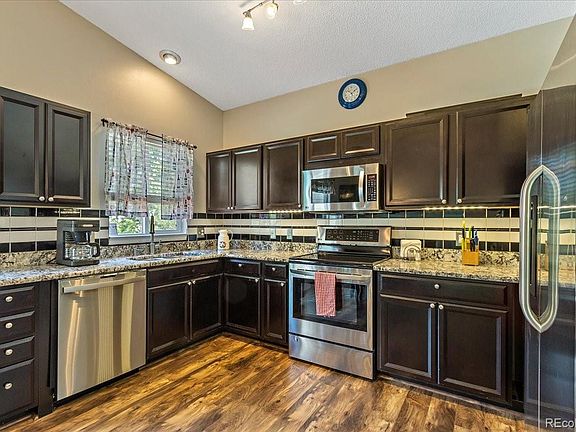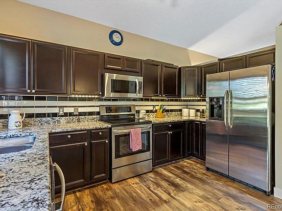 Pride of ownership abounds in this beautifully remodeled home. The gorgeous kitchen featuring new wood laminate floor, granite counters, backsplash, pantry and stainless steel appliances. There is a nice eating nook too. Both the dishwasher and stove are less than a year old and the microwave and refrigerator are less than 5 years old. All baths have been remodeled with solid surface counters, new vanities and tile floor. Ceiling fans in all the bedrooms too. Wow- all appliances stay including washer/dryer. The basement has a newly finished room adding to the sq. footage and would make a perfect rec room, playroom or gym. Enjoy relaxing on either the front porch or the back deck. Cool off in your own private pool. - what a great place to enjoy with friends. There is a newer back door too in addition to a newer roof. Maintenance free exterior. This home is close to shopping, dining and Cherry Creek schools and is a great house, come take a look.
