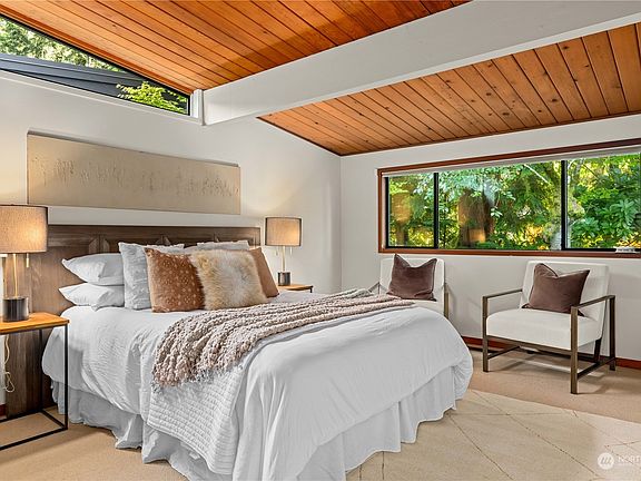 Located in Normandy Park, this mid-century gem by renowned NW architect Paul Hayden Kirk offers exceptional waterfront living. Retaining its original features, it seamlessly integrates indoor and outdoor spaces to showcase stunning Sound views. Huge windows flood the open-concept living area with light, highlighting unique elements like stained glass doors, clear cedar paneling, and copper accents. The renovated kitchen and spacious layout are perfect for entertaining, complemented by 80' of private beach and lush landscaping. The 840 sq ft 3-car garage is a rare find. This home is a 'Lot A' home so residents enjoy access to amenities at the Normandy Park Community Center. This high-bank retreat beautifully combines PNW design with nature.