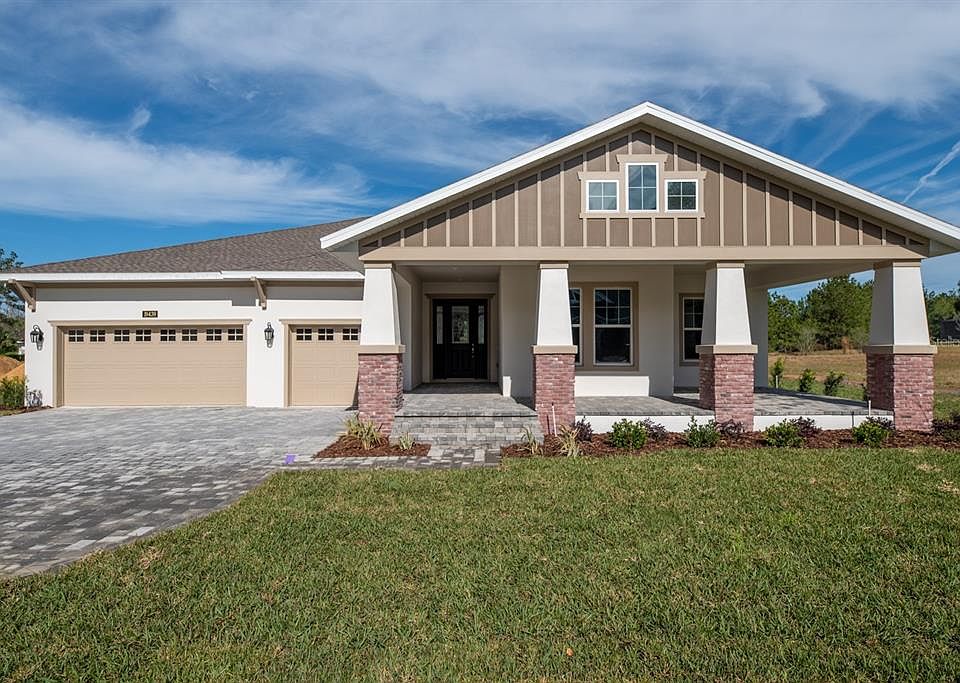 Under Construction. NO CDD. Completed very soon in end of January 2024. Entering the prestigious Southern Hills Plantation golfing community through the manned guard gate you will fall in love with elevation changes reminiscent of Georgia. This Craftsman 4 bedroom with large bonus room/den(5th bedroom or home office) plus 3 car garage is laid out perfectly over 1 story with high ceilings and backs up to a wooded conservation area. Entering the home you are greeted with the highly sought after open floor plan of a large living room (with tray ceiling), dining room, and kitchen. The chef's kitchen features a gas cooktop with hood, built-in convection oven and microwave, soft close real wood white shaker cabinets, quartz countertops, large island with breakfast bar seating, subway tile backsplash, and under cabinet lighting. The home also has a split floor plan with the master retreat featuring a tray ceiling, 2 walk in closets, his/her vanities, plus a frameless shower and separate soaking tub. The home has many upgrades including 8 foot doors, luxury vinyl flooring in all common areas, subway tile backsplash, detailed baseboards, quartz countertops, tray ceilings, frameless shower enclosure, tankless gas water heater and just too many more to list. Tons of covered outdoor space including a long front porch. The large covered back porch making an entertainer dream of an outdoor kitchen overlooking your potential pool and wooded backdrop for privacy. The community has a resort style pool, fitness center, Har-Tru tennis courts, pickleball courts, walking trails, and a Tiki Hut restaurant that will be completed before summer. Pete Dye fell in love with the elevation changes ranging from 60 feet to almost 250 feet here at Southern Hills. The private world-class track is rated by Golf Week as a top 100 residential course in the United States. It even features practice facilities of a driving range, chipping/putting greens, and a 6 hole par 3 course. Located just off 41 and the Suncoast Pkwy, you can get to Tampa International Airport and Raymond James Stadium in just 45 minutes. No CDD fees as the builder paid off the entire bond saving you THOUSANDS over the years, just a small O & M annual fee. Come see why everyone is choosing to live and play in the luxurious Southern Hills! The home will be completed in January of 2024 (staged pictures in MLS of the same model completed).