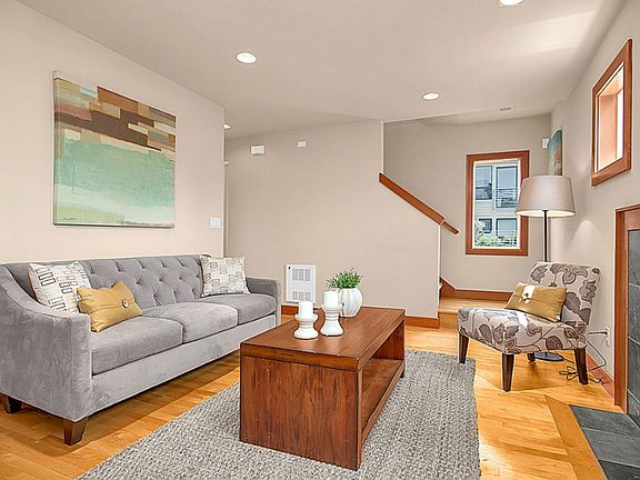 Well-maintained 2002 home w/ comfortable, common-sense design & gorgeous Sound views from upstairs. Hardwood floors span the LR, DR & open kitchen w/ SS appliances incl gas range. No HOA dues, slate entry, attractive wood trim throughout, vaulted ceilings upstairs, A/C in the master, gas FP, attached garage, patio & more. Perfectly situated mere minutes from downtown w/ exciting neighborhoods, parks & amenities in every direction + transit options & even a local café & coffee shop 2 blocks away.