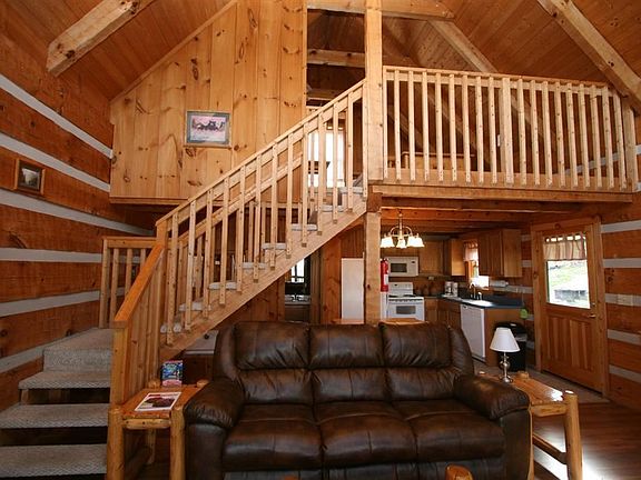 Enjoying the unforgettable mountain views, sharing intimate memories with your own special someone or enjoying the incredible sunrises and sunsets. Very private mountain getaway! Spacious wraparound decks and just enjoy the sounds of nature surrounding you. You enter this cabin on the main level which has the living room, a warm stacked-stone woodburning fireplace, fully-equipped kitchen, and a two-person Jacuzzi whirlpool tub. You step out back to the wooden deck with its hot tub and wood rock. Upstairs in the open loft area is the bedroom, This lovely cabin is located on the Wears Valley side of Pigeon Forge. It is mere minutes from the Parkway through Pigeon Forge, Cades Cove, Dollywood and Dixie Stampede, or downtown Gatlinburg.