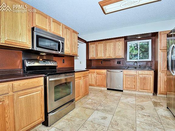 Updated 4 bedroom, 3 bath home in renowned Academy School District 20. 2270 square feet with four levels of living space. Spacious living room has hardwood floors and lots of natural light. Kitchen has been remodeled with lots of beautiful cabinets, new stainless steel appliances, tile floors and countertops. Separate dining room on main level. Family room is off the kitchen area with gas fireplace. Upper level has three bedrooms and two baths both upgraded with new fixtures and tile. Basement level has additional bedroom and extra bath and large open rec room. Laundry room including front loading washer/dryer. Large 2+ car garage with work/storage areas. Fenced landscaped yard with sprinklers and RV parking on side of house. Storage shed in back yard. Convenient central location close to Academy Blvd.