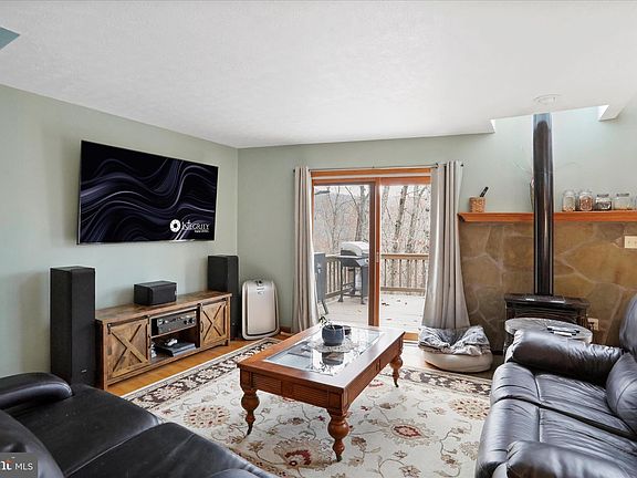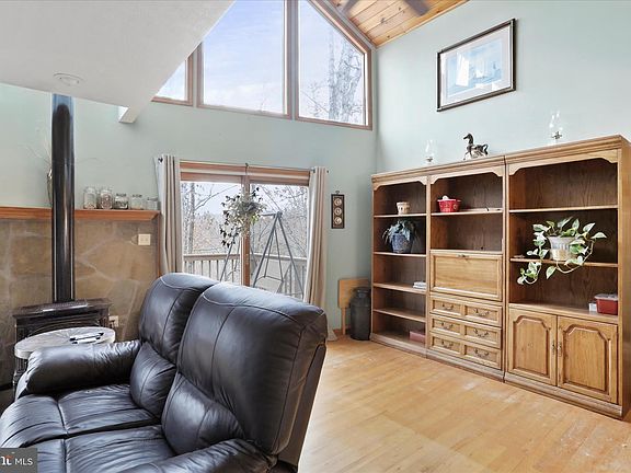 Welcome to Crossings View! This beautiful home, nestled on top of the Cacapon Mountain is more than just a cabin! Topping the ridge you are greeted with this 3 bedroom home and large 2 car garage with additional living space and bar/studio! Inside the home take in the natural light, the views, vaulted ceilings and open concept! The open concept kitchen, living room and dining room are complimented by the beautiful hardwood floors, an eat-at kitchen island with range, a main level bedroom and bath, the floor to ceiling windows in the living room overlooking the deck and yard, and the separate dining and breakfast area! Upstairs is the primary suite with a lofted living area, perfect for additional gathering space, office or personal hang out space. Onto the lower level, the third bedroom and bathroom are paired with a family room/great room and laundry room. The lower level has it's own entrance and deck as well as a gas stove and storage making a great option for an in-law suite or additional living space! Each level of this home feels like it's own personal area making it great for family trips, having guests or just enjoying your own time! As if the home doesn't offer enough space, the garage an incredible addition! This 2 car garage with front entrances has plenty of additional space as well as a bar and a gorgeous studio apartment! The studio apartment is completed with hardwood floors, a tile surround bath/shower, recessed lighting, and is prewired for a home theater! As you step back outside and take in the home and garage, you can admire the large lot, the views, and even the cedar fenced portion of the yard ( 0.5 acre), the shed and the back up generator! Whether you are looking for a forever home, a mountain escape, an investment or even a retirement home Crossings View has so much to offers! The gated community is packed with neighborhood feels, pavilions, river access for kayak & canoeing, basketball courts and plenty of common areas! Take in the peace and quiet of the woods, rivers and mountain while being close proximity to WV, VA and MD; as well as major routes and highways like 522, WV-99 and I-81! **Ask how the UTV could be yours as well