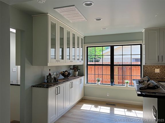 Under a canopy of mature trees on this .339 acre lot is where you'll find this meticulously maintained & renovated Mid Century, now modern, classic full brick beauty! New roof 7/2023! Mail service at your front door w/new mailbox hung at exactly USPS height requirements & new matching house numbers to clearly identify your new address. The programmable doorbell can be set to your style. Upon entering you'll be greeted w/contiguous style, clean lines, understated elegance & yet a very livable lifestyle! This is a home that would be easy to entertain in or just maintain your privacy & be reclusive; the choice is yours. All the electrical receptacles & switches have been updated including a new electrical panel accurately labeled. Sleek, modern beams were added to the family room along w/new cabinets on each side of the refaced fireplace. This home features all new lighting programmed w/cool & warm settings w/dimmers giving you full control over your environment. Every door & drawer in the home are soft close making for a lot of peaceful enjoyment! Well equipped kitchen w/KUCHT appliances including properly vented vent hood, undermount lighting & granite. Flex room/office/guest room w/window coverings that open from top/bottom for added privacy & natural lighting. Wainscoting finishes this room off nicely. Electric gate for peace of mind & security. Covered paito overlooking backyard. Double sinks in hall bath & extra storage behind the door, clean subway tiles surround the tub walls. Low profile bamboo cabinet & medicine cabinet in primary bathroom go perfectly here! Shower design w/comfort in mind; turn water on before entering shower. New privacy fence west side as well as landscaping rocks for drainage. Basement has been moisture barrier sealed & makes for a nice wine cellar or tornado shelter w/emergency light that automatically stays on 90 mins during a power outage. New A/C w/expansion in mind. Central location w/Heller Park in the neighborhood & quick I-44 acc