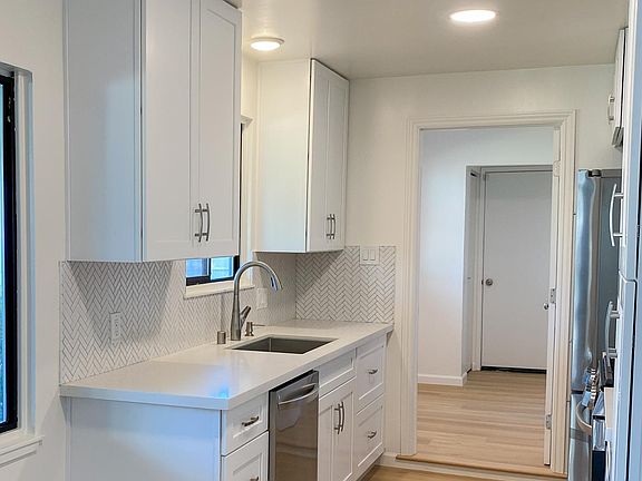 Beautifully remodeled 3 bedroom, 1 bath home. Brand new luxury Vinyl floors throughout. Newly painted all rooms inside, new ceiling fans throughout Kitchen is all new with new stainless steel appliances, quartz countertops and herringbone backsplash. New shaker cabinets. The bathroom has been completely redone and has lots of storage. Large backyard with new deck. On and Off street parking including nice 1 car garage. Walking distance to Strandwood Elementary, Pleasant Hill Park and downtown Pleasant Hill. 12 month lease. No smoking. Tenant pays all utilities Small dog possible