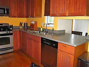 Move right in! Newer kitchen with cherry cabinets, stainless appliances, fabulous corian counter-tops! Hardwood floors, stylish wall colors, updated windows. 1st floor den has sliding doors to rear stone patio and private backyard. Dining area has door to side patio. Huge space on 2nd floor with bedroom, bathroom, nice closet space, and built-in shelves. There is plenty of room in the lower level for play or exercise and good storage space. Convenient location for access to shopping and I79.