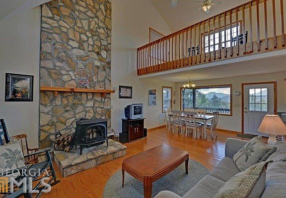 A UNIQUE & WONDERFUL MOUNTAIN HOME WITH STUNNING LONG RANGE VIEWS & COMPLETE PRIVACY ON 13.96 ACRES. 3 LEVELS OF VIEWS WITH BED & BATH ON EACH LEVEL. 3 SIDES ARE EITHER PORCH, DECK OR WONDERFUL SCREENED PORCH, IN THE BEAUTIFUL SAUTEE NACHOOCHEE AREA AND LESS THEN 5 MILES TO DOWNTOWN HELEN. BEDROOM & LAUNDRY ON MAIN. GREAT MIXTURE OF HARDWOOD FLOORS, TILE & CARPET. TOTALLY FURNISHED DOWN TO THE LINENS & KITCHEN UTENSILS, JUST BRING YOUR TOOTH BRUSH. FINISHED BASEMENT & BATHS HAVE BOTH SHOWERS & TUBS. BEAUTIFUL FLOOR TO CEILING REAL ROCK FIRE PLACE WITH A WOOD BURNING STOVE. FULL FINISHED BASEMENT IS 888 SQUARE FT.