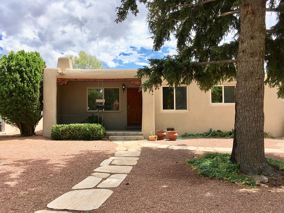 Unfurnished Casa Alegre Original Stamm, Mid-town location, 3 bedrooms, 1 bath, kiva fireplace, ceiling fans, exposed vigas, original wood floors (newly refinished), European style hot water radiator natural gas heat, storage shed, mature landscaping, drip system and timers set for irrigation, LOVELY pergola in the back yard with shade from mature trumpet vine. Landscaping included ( 3x annually ). Garage conversion has separate entrance. New fridge and dishwasher. Tenant pays utilities: SF City: water, garbage, sewer. PNM: electricity. NM Gas: natural gas. Xfinity/Comcast: internet, tv. Two off-street parking spaces. No indoor smoking, pets are welcome. Landlord is local to Santa Fe (but no longer in the neighborhood) and this is their only rental. Close to hospital, shops, restaurants, Frenchy's Field, river walk to downtown. First & last months rent & security deposit due on lease signing. Renter is responsible for all utilities (gas, water, sewage, electricity, wifi). Dogs and cats are welcome.