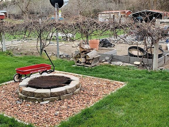 Fleetwood MFG. on 2 acres w/water rights.Fenced,cross fenced,hay storage,pens for animals,boat storage,RV parking,shop,man cave,additional out buildings for pantry,re-loading,2nd shop, & storage.Established yard,fruit orchard & garden space.Under ground watering,fire pit, & green house.Kitchen has new cabinets, paint,flooring,counter tops. Master Bedroom w/great space & soaking tub.Seller will not trim interior doors.Buyer to do due diligence to verify water rights.ISLAND EXCLUDED from sale.