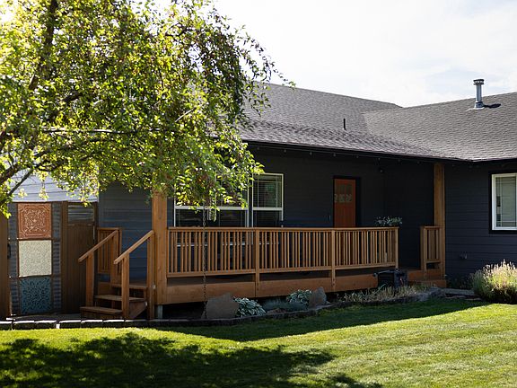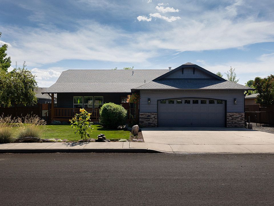 Updated home one block from Dry Canyon. Stylish remodeled gem in Northwest Redmond, just on block from the Dry Canyon. A spacious great room flows into a beautifully updated kitchen with granite counters, new cabinets, farmhouse island sink, additional prep sink, professional appliances, subway tile backsplash, luxury plank vinyl flooring, and modern lighting. Bedrooms feature plush carpeting, and the primary suite offers double vanities and a walk-in closet. Fresh exterior paint, trim, and a newly painted board fence boost curb appeal. The corner lot includes extensive RV parking, a fully fenced backyard with shade tress, cane fruit, and a covered patio. A 10x30 detached utility building provides flexible use as an office, studio, or workshop. Natural gas heating and whole-house A/C. Near schools, shopping, parks, and Dry Canyon trails - move-in ready!