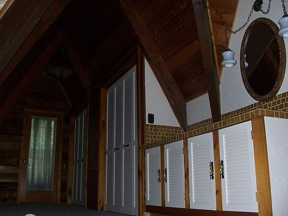 a-frame in the woods on 3 acres. loft bedroom with own bath. jacuzzi tub in master bath with separate shower. Main floor laundry. new water heater and air conditioner. 2 car attached garage. finished basementwith walk out to patio, with bedroom and full bath