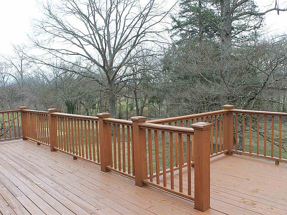 Perfect Location in Woodbriar Subdivision! Excellent lot that is private in the backyard. Lays very well. (1.2 acres). Some is fenced for dogs etc. Huge stamped concrete patio below with hot tub. Recently stained decks. Several updates have been completed to this full brick home. Main level has newer windows and exterior doors. Over ($9,000 for windows). Vinly soffits installed, kitchen counters, 6" gutters, water heater and softner. Roof and Heat/Air installed in 2002. New compressor installed in 2009. Large main level living with over 1800 Sf. Split bedroom design. 2- car main level garage. Lower level offers: Large rec room, 2 Bedrooms and huge full bath. Deep garage space down with plenty of room for boat, workshop etc. Super neat home. Must see.. Buyers to verify all information. *Septic approvals have not been verified on this property*