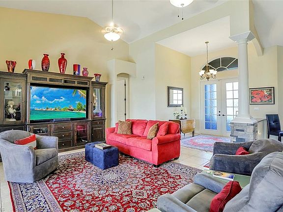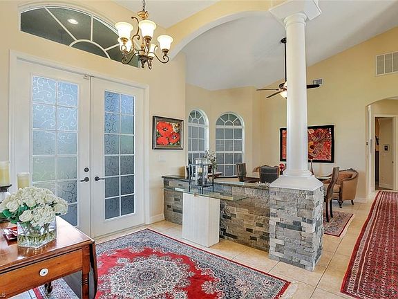 It still Feels Like New when you walk into this well maintained SOUTH facing home located in Everest Community with Gulf Access and NO bridges. Approx.. 10 minutes to the river through no wake canals. Soaring ceilings and open floor plan make you feel at home the moment you walk through your double door entry. Huge Master bathroom with a walk in shower and NO glass. Large jetted tub, separate sink and vanities with custom mirrors. Split walk in closets. Enclosed water closet. Split Master with 2nd master with shower ensuite. TV's in guest B/R and lanai included. Oversized counter height kitchen island 6 bar stools included. Low Maintenance home with salt water and heated pool. BBQ and canopy included. Whole house soft water and carbon filtration system. Wash you boat down with soft water!! No streaks! New vinyl decking on the dock and a 13,000 lb covered lift. Stand Alone ice machine to fill your ice chest. 2 car garage is over sized with a full size pull down privacy screen. Newer HYBRID water heater, A/C and air compressor. Tons of Attic storage with a dumb waiter. Do not have to carry your storage up stairs. This home is ready for the new owner to make it their home.