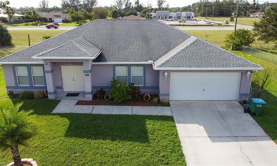 Just what you would expect from the SW Florida Lifestyle. Step through the wide French double doors into the inviting foyer premising just how great this home really is. From there you will see there is a dining room to one side for formal entertainment. Then the other side a den, which is perfect for those who work from home! Breeze on through to the kitchen/great room and find the expansive living space boasting a large island with plenty of room for lots of seating. The great room is a perfect spot for a breakfast dinette plus relaxing while kicking back to watch TV in your living space. The Main bedroom offers huge walk in closet and elegant en suite bathroom with soaking tub. With 2 guest suites and guest bath this home boasts a total of 9 rooms in the home you will definitely find you have room to spread out. Actually you have 10 rooms if you happen to include the under truss screened in lanai! ALL ASSESSMENTS PAID on an OVERSIZED SW Cape lot, major value! Not only is this an immaculate home it offers a high elevation, new washer/dryer and hot water heater. The expansive tropical back yard has Cherry, Mango, Papaya, Guave and Fig Trees. Home Warranty Provided to Buyer!