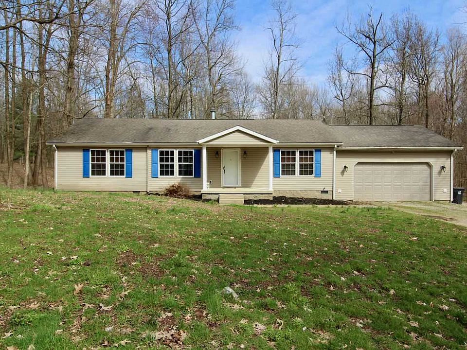 Great opportunity for 5 acre wooded lot with a 30x40 pole barn. This 3 bedroom 2 bath home offers a living room open to the dinning with a stunning fireplace. Master bedroom has a bathroom with double vanities and a walk in closet. The 2 other bedrooms offer walk in closet space as well. Attached to the home is a 2.5 car garage.
