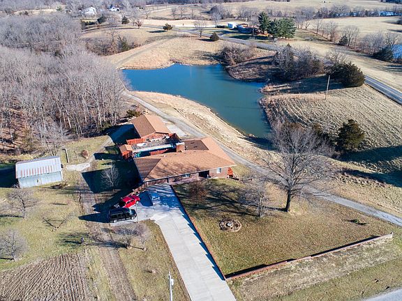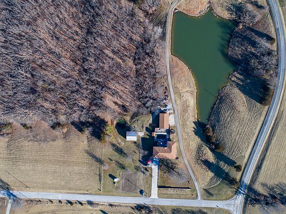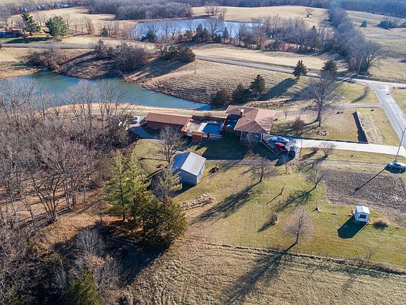 The land you've been waiting for in Boone County! The all brick 4 bedroom, 3 full bath rancher with wrap-around deck sits on a gorgeous 10 acres on paved road. New brick retaining wall installed 2017. Roof installed in 2014. Extra wide overhangs. Main level features kitchen, main level laundry, dining/living room combo with extra wide brick hearth with wood burning fireplace. The master bedroom with master bath and bedroom #2 feature a wrap-around deck overlooking the lake. Lower level features huge family room with wood burning stove, 2nd kitchen perfect for mother-in-law quarters, and 2 additional bedrooms. Walkout all concrete patio perfect to enjoy a quiet evening. Owned water softener.