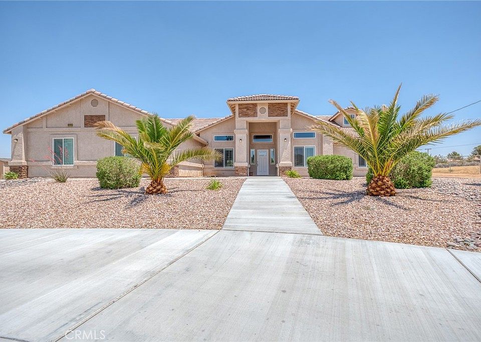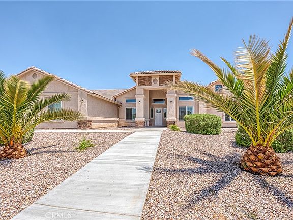 Welcome to 19440 Yanan Rd, Apple Valley! This stunning property offers a spacious and luxurious living experience with its 4 bedrooms, 3 bathrooms, and a range of exceptional features. Situated on a generous 1.86-acre lot, the property is fully fenced and boasts a delightful in-ground pool and hot tub. As you enter the house, you'll be greeted by a bonus room that provides versatile space for various activities. In addition to the bonus room there is a large game room. The home has built-in storage everywhere, ensuring a clutter-free environment. The interior features tile floors, creating a stylish and low-maintenance living area. The heart of the home is the great room, which encompasses a large kitchen with an oversized island and beautiful granite countertops. This spacious kitchen is perfect for culinary enthusiasts and offers ample space for preparing meals and entertaining guests. The living room is adorned with a captivating California blonde stone fireplace, adding warmth and charm to the space. Wood shutters throughout the home enhance the aesthetic appeal while providing privacy and light control. The bedrooms are designed with comfort in mind, with plush carpet flooring and walk-in closets in each room. The primary bedroom stands out with its two walk-in closets, offering plenty of storage space. The ensuite bathroom in the primary bedroom features a dual sink vanity, a walk-in shower, a separate soaking bathtub providing a luxurious retreat.Outside, the property features a separate fenced area around the pool, creating a safe and private oasis. The pool area is beautifully landscaped with lush grass, palm trees, and two covered pergolas, providing shade and a tranquil environment for relaxation or entertainment. The location of this property is also noteworthy, as it resides in a desirable golf course neighborhood. With its exceptional features, spacious layout, and luxurious amenities, this is an exquisite custom-built home that offers both comfort and elegance for the discerning homeowner.