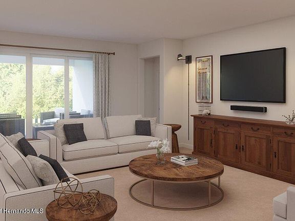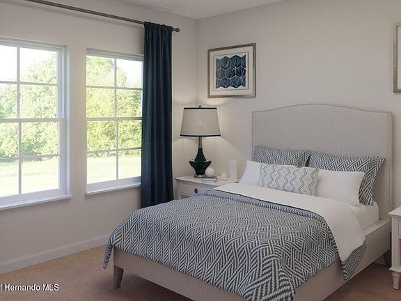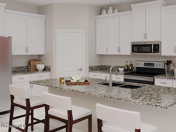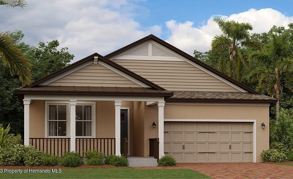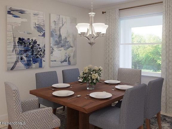 A multipurpose flex room is great for any number of hobbies in this spacious single-story home, while an open floorplan containing the family room, kitchen and dining room offers combined living and dining. Through sliding glass doors is a large covered patio for peaceful outdoor moments. Situated on the opposite side of the secondary bedroom for increased privacy, the owner's suite showcases a full-sized bathroom and walk-in closet with direct access to a convenient laundry room. A two-car garage provides extra storage room. Southern Hills is a gated masterplan community located in Brooksville, FL. Surrounded by beautiful rolling hills and panoramic views, homeowners experience lavish resort-style living with luxurious amenities such as a pool and fitness center, as well as the opportunity to become a member of the private 18-hole Pete Dye Signature Golf Course and resort-style Golf Clubhouse. The local area is rich with great breweries, wineries and dining options, along with gorgeous hiking and biking trails in nearby nature preserves and parks.