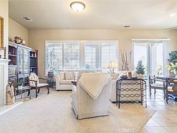 Beautiful home located in the desirable Apple Valley 55+ community. Welcome to your new home! A charming front courtyard offers the perfect spot to relax and enjoy the evening. This spacious residence features 2 bedrooms, 2 bathrooms, and double-door to the office. The open living area includes a cozy fireplace and an inviting dining space. The kitchen is well-appointed with Corian countertops, under-cabinet lighting, pull-out shelves, and a generous pantry. The primary bedroom is a comfortable retreat with a ceiling fan and custom shutters. The ensuite bathroom offers dual sinks, a large walk-in shower, and an expansive closet. Step outside to the covered patio, where you can sit back, unwind, and take in beautiful views of the lake and golf course.