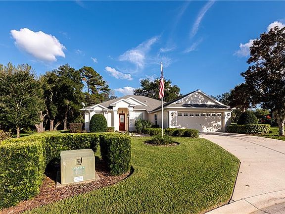 This 2000 custom home with 3/2 has been meticulously maintained is ready for you to move in. Beautifully situated at the end of the road, at the top of the hill with amazing views in the sought after neighborhood of Fox Trace. Your new home has a golf course view and has lots of privacy due to the shape of the lot. This spacious home has over 1800 sq feet of living space with high ceilings and a large family room with real wood floors. The kitchen is open to the living area and dining with lots of cabinets. The inside laundry is next to the kitchen with a large laundry tub. This split floor plan layout has a larger garage that will fit a diesel dually truck and a car. New AC March 2019 High efficiency unit. Your yard maintenance is included with your monthly dues so you can enjoy your free time as you also become a member of the Rainbow Springs community Park. You have access to the pool and club activities as well.