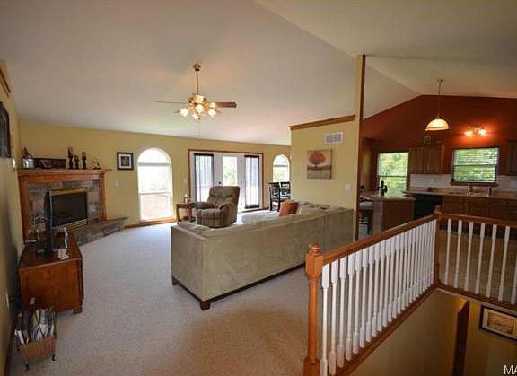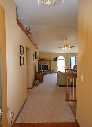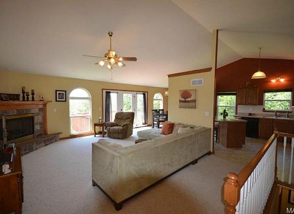The views from this 4-bedreoom, 2.5 bath ranch home are certain to impress. The vaulted ceiling in the great room, dining room and eat-in kitchen provides and open feeling to the main level with a gas stone fireplace as the focal point. The master bedroom with it's own private deck offers a retreat that includes a spacious bathroom with a Jacuzzi tub and separate shower. The walkout lower level is newer with lighted built in bookshelves in the family room, a 4th bedroom, 1/2 bath and plenty of unfinished storage space. This beautiful 4 acres also has access to a private subdivision lake.