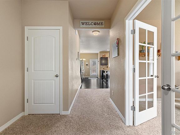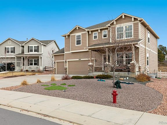 Welcome home to Misty Acres Built in 2018, this beautiful two story home with a fully finished basement is sitting on.17 of an acre on a quiet cul-de-sac, while offering great curb appeal. It offers expansive views of Pikes Peak and the surrounding majesty of the Front Range, all the way down to Cheyenne Mountain. Enjoy your morning coffee on the included front porch swing, while taking in the peaceful beauty of the area. With a very large driveway, three car garage with extra built-in storage, and a house-matched 8'x10' shed, you can easily accommodate all of your parking wants and needs. The entire yard has been Xeriscaped for super easy outdoor living. front yard has a sprinkler system and drip lines in place for those who may want to utilize that feature. The fully fenced back yard features a white vinyl no-maintenance split rail system, a rock-lined faux creek with charming bridge, and high end turf for the kids or pets to play on. There are no homes directly behind this property, and the neighborhood-only dead-end road behind the house has limited vehicle traffic, so you can spend relaxing evenings on the flag stone patio sitting by the fire pit and taking in the stars. the upper level offers a lot of versatility, featuring the main bedroom with a blue pine barn door that leads to a five-piece bath and massive walk-in closet, two additional bedrooms (with incredible views of the mountains), a massive loft/family room, laundry room, large storage closet, and a full bathroom. The main floor layout includes an office/study with French doors, a powder bath, inviting kitchen with granite counter tops and center island, and an open dining room and living room with a rustic barn wood accent wall. In the finished basement, there is a huge bedroom with a unique bookcase door to a hidden storage closet or what could be turned into a kid's fun and secret play space. A nicely sized rec room (currently being used as a music room) and full bath rounds out the lower level.