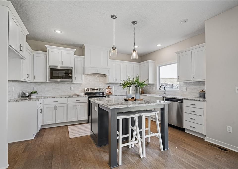 Separate vanitiesFour large bedrooms upstairsSpacious primary bedroomKitchen with islandWalk-in pantryApron sinkWalk-in shower