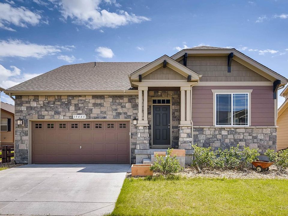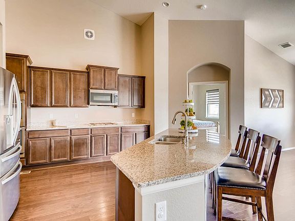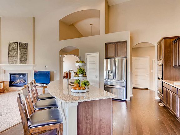 Modern & inviting 4 bedroom ranch w/ stylish finishes throughout! Open floorplan with flowing spaces for entertaining & everyday! Espresso hardwood flooring runs from the foyer through to the dining room, kitchen, & nook. Soaring ceilings in the family room make way for large windows & natural light. The gourmet kitchen is the heart of this home & has been upgraded w/ staggered cabinetry, a large island, stainless steel appliances & slab granite countertops. Kitchen opens to casual dining area w/access to the covered patio for al fresco dining. Formal dining room w/wainscoting is the perfect place to gather for the holidays. Master suite w/ a sunny bay window, walk in closet, & 5 piece spa bath. All 4 bedrooms feature private en suite baths. Enormous finished basement with huge media room with built ins, bedrooms 3 & 4, &plenty of additional space to play & entertain. Home backs to park with open space and playground. Walk to Stroh Ranch Center for ice cream, dinner & more!