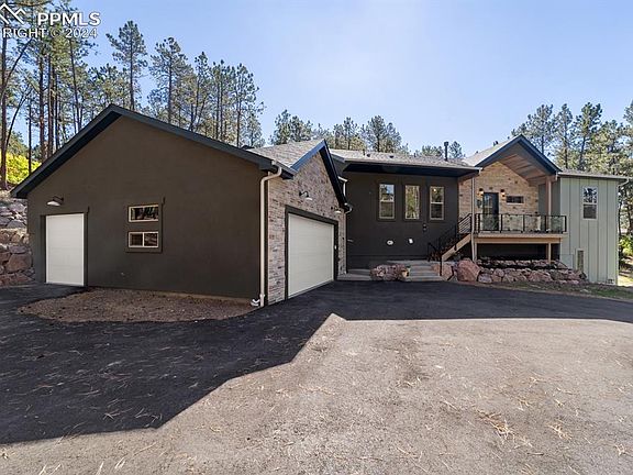 Chic new construction in the sought after Woodmoor neighborhood where new homes are a rare find. Carefully curated by a family team with a homeowner in mind. This unique space has been designed and refined from the ground up with livability, beauty, and quality in mind. Just a few minutes walk to trails and large open spaces or a longer walk or short car ride to the Woodmoor Country Club. Indoor and outdoor spaces that flow effortlessly together from the beautiful front deck with glass railing to the secluded back patio out the oversized sliding door in the great room. Open concept kitchen, living, dining room as well as an expansive walkout basement with dual family rooms, wet bar, and three large bedrooms make this a great house for entertaining or a spacious separate living area. Kitchen features a fireclay farm sink, double ovens, induction cooktop, stylish cabinetry, custom shelving and more. Master bathroom with spa style finishes and amenities. All finishes are hand-picked and custom designed from the beautiful tile work to the stone slabs and wide plank rough sawn hardwood flooring. Several built-ins throughout the home designed and built in place by a one of a kind carpenter with over 50 years of experience. Oversize garage features over 927 square feet, a front load double garage and a single side-load garage, with a catwalk and tall ceilings for extra storage. Garage is prewired with 220, epoxy floor, insulated, drywalled and painted. It has several windows for natural lighting as well as plentiful overhead shop lights. The home was custom designed for this beautiful lot and is a wonderful space ready for you to make it your home.