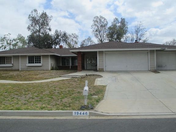 Beautiful one story home located at 19446 Dry Gulch Rd in the city of Corona has wood flooring throughout main living areas . The property was built in 1985,offering 4 bedrooms, 2 bathrooms, with 2120 square feet of living space, a lot of 20,038 square feet. It has a living room and family room with 2 cosy fireplace, dining room, inside laundry/utility. It has a master bathroom with separate shower area. Property has ample of parking space with 3 attached car garage and multi car parking driveway.This is a bank owned property to be sold as-is. Buyer and agent to verify all.PROPERTY SOLD AS IS WITHOUT REPAIR OR WARRANTY.