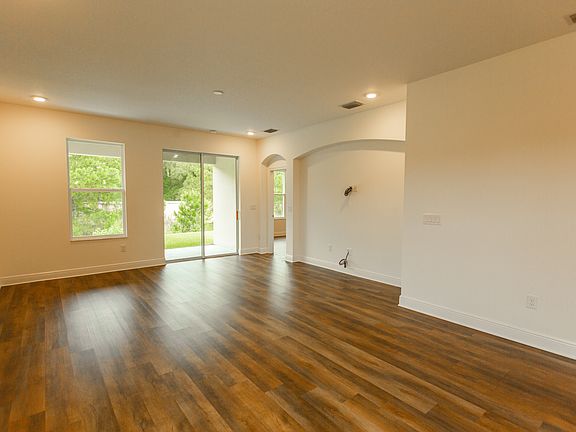 MOVE IN READY! This 1-story, 2-car garage "Redwood" home is a MUST SEE! It features a stunning kitchen with 42" wood cabinets with stainless steel appliances and a gorgeous quartz island overlooking the family room. The home boasts a formal dining room and private den area plus many upgrades such as Luxury Vinyl plank flooring in all living areas and Master Suite. Enjoy immediate access to a private, covered lanai and with a secluded yard and a private den with double glass doors and great natural light tucked away in the front of the home. The Master Suite is located towards the back of the home with a large walk in closet. This cozy home is nicely appointed with three bedrooms and two baths with Quartz countertops and all undermount sinks. Enjoy Award Winning Construction and Energy Saving Features such as 30 Year Dimensional Roof with Transferable Warranty, Radiant Barrier, OSB Radiant Roof Sheathing, Energy Star rated Double Pane, Low -E Vinyl Frame Windows, Trane 16-SEER Variable Speed Air Conditioning and Heating System.