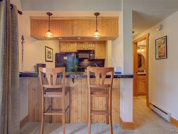Just a few streets down from the base area of the ski resort lies this stunning one-bedroom, one-bathroom condo. This condo includes a private storage closet next to the front door that you can store and lock up all of your ski gear, bikes, camping gear, and so much more. As you walk in you’ll immediately notice the property is outfitted with a gas fireplace, open living room, large private deck, and gorgeous raw wood beams that add a little bit of modern mountain home flair. A bartop-style counter connects the living area to the kitchen for easy and seamless entertaining. The bathroom includes a stone tile counter and classy glass sliding doors in the shower. At the end of the hallway sits the spacious bedroom with tons of natural light and decent-sized closets to store anything you need. This Rockies condo is a wonderful place to easily access the ski area or to just take in the beautiful views from your deck.