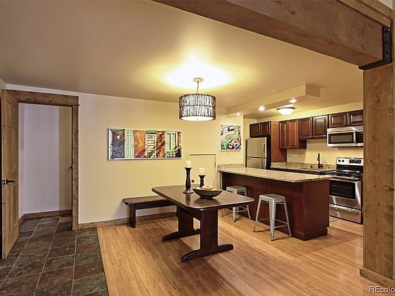 Location and amenities are what keep the Rockies top of mind in the ski condo world. Only blocks from the ski area and on the free bus route or take the shuttle. After a day of mountain adventure take a dip in the community pool and the hot tub. Inside the residence enjoy the spaciousness of vaulted ceilings and the beauty of exposed wooden beams. Because this unit has been recently remodeled with an artful dry stack chimney around a gas fireplace insert, new cabinets, a granite counter top, new slate entry way, new carpet, fresh paint, new trim and 6 panel pine doors there isn't anything left to do except move in. Upstairs is the second bedroom with room for a queen and a twin bed plus full bathroom. Alternatively, the upper bedroom could be an office or a game room. Rolling Stone Ranch and Golf Club is included with Buyer paying the transfer fee.. Basement: NONE