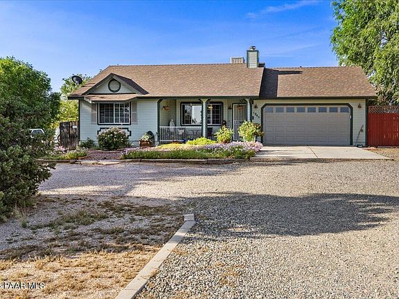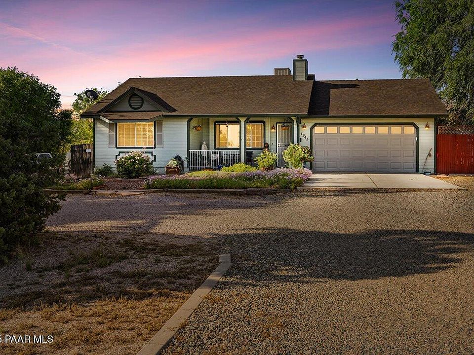The hidden gem of Chino Valley!! This home offers so much more than meets the eye. Charming, clean, and ready for you to enjoy. Cozy up next to the pellet stove that heats the whole house perfectly, all the way to the retreat of your primary bedroom. Take in the beautiful views of Granite Mountain with no one behind you blocking any views. 2 car attached garage AND 2 or 4 garage detached, part of the detached garage is being used as a game room but could be opened up for a 4 car garage. High producing private well and little over an acre you can bring your toys, RVs, horses, chickens or whatever else you can dream up, also there is a trail head just feet from your front door to hike or ride horses on. This property is a GEM and has so much to offer, come see it today.