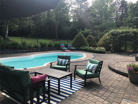 Want to live on your own road? Welcome to 1945 Fawn Road, a magnificent, private estate situated on 8.5 acres overlooking rolling hills only 20 minutes south of Syracuse! Surrounded by open fields & mature foliage with meticulously landscaped grounds, this property combines 7+ single family plots on a town-maintained cul-de-sac to create a private oasis! Relish a morning coffee on the front porch or family dinners on the front deck! Enter through the two-story foyer as light shines through the new windows! The large family room has a beautiful fireplace & an enclosed screen porch! The office/library or fourth bedroom on the first floor has another wood fireplace to warm up at night! There are a total of 4 wood fireplaces in the house including a wood stove in the half-finished lower level! The kitchen features SS appliances, granite countertops, bar seating & opens to a large dining area! Sliding glass doors lead to an expansive fenced patio area surrounded by meticulous perennial landscaping & an inground fiberglass pool! From the patio walk under the shade of a grapevine perched above a wooden pergola; with no neighbors in sight, pick wild blackberries in the summer & make your own grape jam in the early fall! Enjoy first floor laundry next to the kitchen with NEW washer/dryer & a walk-in pantry! The Second story features an expansive owner's suite along with two generous sized bedrooms with dual closets that share an upgraded bathroom! The owner's suite has large windows, a dressing area with wall-to-wall closets, an en suite bathroom & an attached sunroom with floor to ceiling windows, electronic blinds & views overlooking your hidden paradise! Upgraded furnace with new Comfort System; whole-house humidifier, UV light filtration system, heat exchanger with lifetime warranty & digital smart thermostat! These owners spared no expense in impeccably maintaining the home with McClurg! Close enough to the city with the country setting DREAMS are made of! Fawn Dr has everything you've been looking for!