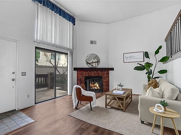 Exquisitely maintained, this enchanting north Duarte Paragon Townhome is a gem. Nestled as a private end unit, it graciously sits at the tranquil back of the community. The home boasts a luminous and expansive open concept, reminiscent of loft-style living, adorned with lofty ceilings that invite abundant natural light to dance within. Step into a separate living room adorned with a gas/wood burning fireplace, complemented by sliding glass doors that lead to a secluded patio, creating an inviting space for relaxation. The family room seamlessly flows into the dining area, which in turn adjoins a spacious kitchen offering ample counter space and storage, perfectly catering to culinary endeavors. Ascend to discover a generously sized master bedroom exuding an airy ambiance, complete with an attached full bath, a walk-in closet, and sliding glass doors unveiling a balcony that offers breathtaking vistas of verdant surroundings. Two additional spacious bedrooms, one boasting its own walk-in closet, provide comfortable and versatile living spaces. An oversized full hall bath caters to convenience and functionality. Throughout the home, numerous storage closets and cabinets elegantly merge practicality with sophistication. A two-car attached garage, equipped with laundry hookups and direct access into the unit, ensures both ease and security. The community amenities are equally delightful, featuring a sparkling pool and spa, enveloped by lush green landscaping that fosters a serene environment. Additionally, the inclusive HOA covers water and trash, enhancing the ease of living in this inviting community.