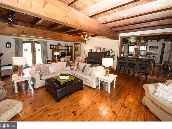 Beautiful country setting on a gorgeous tree lined 1.6 acre parcel - Molasses Creek Farmhouse retains many of its long ago origins, yet blends with modern desires ? Central A/C (dual zone), appliances and more. The 1848 structure has well-conceived additions. (1899 & 1992) The home provides nearly 3,000 square feet of rustic, stylish living space, geared for entertaining and everyday living. Pleasing random width wood floors, deep silled windows and bead-board and wainscot accents are reminders of the home's beginnings. An impressive great room with several appealing attributes such as a stunning walk-in fieldstone fireplace with a Vermont Casting wood stove with hand hewn mantel, and an open beamed ceiling. The family room provides easy access to the main floor laundry room and backyard. The kitchen offers modern appliances, a fabulous walk-in pantry, accent lighting, a breakfast bar, and access to the side porch as well as the dining room. The Living room (currently used a playroom offers flexibility and a separate space. The amazing large master bedroom suite with vaulted ceiling and two walk-in closets is one of four spacious bedrooms on the upper level. Renovated in 2008, the two-story barn, offers rooms for an office, game room, art/studio or other ? enjoy a custom bar and gleaming floors. Relax in the refreshing in-ground swimming pool and enjoy more space in the finely finished pool house. Love horses? The Triple L Ranch is next door and offers boarding & lessons. This home won't disappoint and is conveniently located with easy access minutes from the PA Turnpike 476 and I-78. Travel to Historic Bethlehem, Philadelphia with ease.