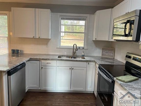 Recently renovated 4 bedroom/2 bath off Lexington Road- close to downtown Athens. This brick home can be a great home for a family or a commercial property. NEW flooring, NEW stainless-steel appliances and NEW paint. His/her closets in the master suite. The master suite includes it's own entrance from the backyard. Full bathroom includes laundry closet. Includes a great fenced in yard with a covered patio and a storage shed in the back. Multiple parking spots in front of the house. This is a great house for entertaining and enjoying the best of Athens.