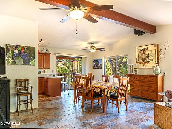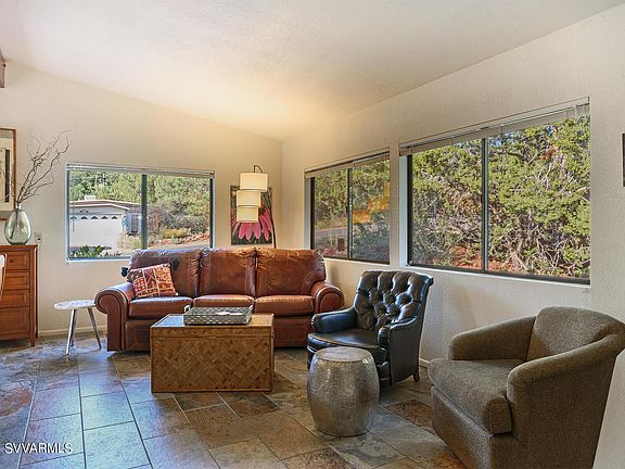 Are you ready to enjoy all that this home & Sedona have to offer? From the front door you are moments away from the Film Festival, Shopping, Sugarloaf Trailhead & some of the world's best Mountain Bike Trails! The detached garage has been used to entertain, for workshops and mountain bike storage, while the large gravel driveway worked great for Bocce Parties & Stargazing! The Livingroom has Red Rock Views of Thunder Mountain and Sugarloaf or you can be mesmerized by the Lyman Whitaker Double Helix Wind Sculpture that stays with the house.This easy to maintain house & yard leaves you time for all of this enjoyment!The roof is new (2021), exterior paint & gutters are new (2021) and the relaxing side porch has been refinished with a Beautiful wooden slatted ceiling. There is a new