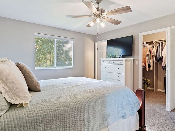 This home is one of a kind! Dreamy backyard boasts manicured lawn, mature trees, large shed, stream along the back, and is fully fenced. Kitchen features stainless steel appliances, with new range, microwave, sink and faucet. Neutral 2-tone paint throughout. New furnace and AC in 2019. New front windows are triple-pane. Custom window coverings include shutters and Hunter Douglas auto-shades. Garage has abundant storage space with built-in shelving.