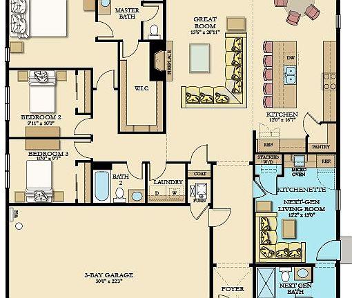 Gorgeous one-level Cameron Next Gen plan, spacious living, 4 bedroom, 2 full bath. Private separate suite. Island kitchen w/gorgeous granite counters, white cabinets. Owner's Suite includes lg walk-in closet, A/C ready, blinds, fencing, landscape & irrigation front and backyard all included. Sample pictures, not actual home. Features & products can vary by community. Move in ready end of May