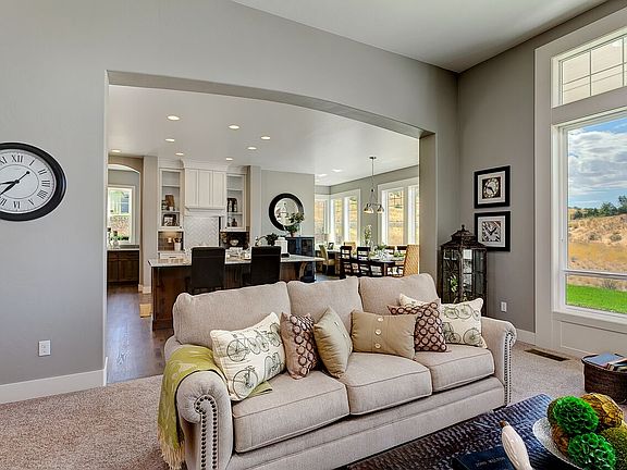 Boise Hunter Homes presents The Oxford. 3 bedrooms + office, 2.5 baths, and triple garage! This grand house has stunning amenities, as well as soaring ceilings and floor-to-ceiling windows which allow for incredible views from the great room, kitchen, nook and master bedroom. A stunning kitchen, formal dining room with butler pantry, and a large master suite make this a must see!