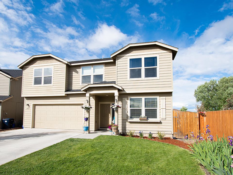 Welcome Home! Close to parks and local conveniences, this abundant and well designed home is just what you are looking for! Spacious 4 bedroom home with separate den and open floor plan, offers plenty of space for everyone. Living room and master downstairs, family room and three bedrooms upstairs. Tasteful finishes throughout with newer Pergo-Outlast flooring downstairs, vaulted ceilings, and Central AC for those warm Central Oregon summers. Outside, the large and well landscaped back yard has room for all your activities--extra stamped patio area, separate side yard for pets, raised flower beds, fruit trees and green, green grass.