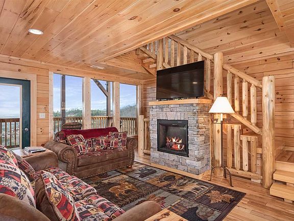 Incredible views from this rental cabin. Fully furnished with a pool table,hot tub. Awesome decorated ,wood floors thru out with two electric fire place. Plenty of storage . Close to Dollywood, Pigeon Forge. One other room that can be used as a study,fitness room or as bedroom.